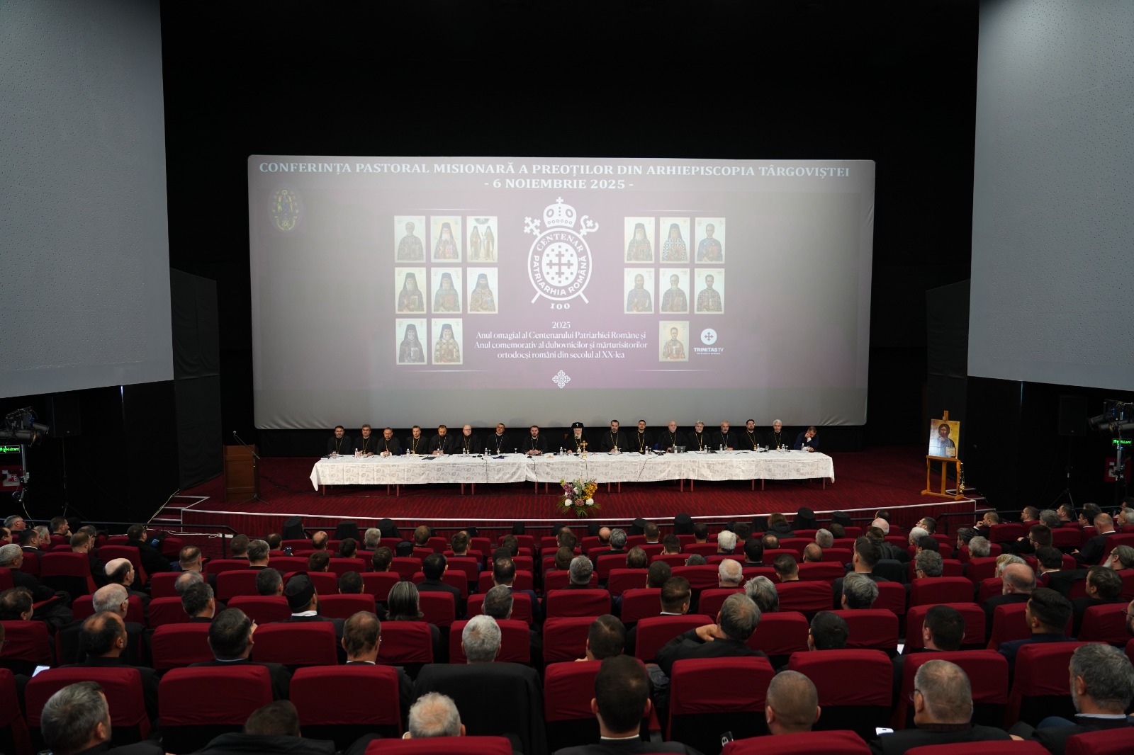 În Sala „Independența” din Târgoviște, s-a desfășurat joi, 6 noiembrie 2025, sub președinția Înaltpreasfințitului Părinte Mitropolit Nifon, Arhiepiscopul Târgoviștei, Conferința Pastoral-Misionară semestrială a clericilor din a doua parte a anului, cu tema ”Anul comemorativ al duhovnicilor și mărturisitorilor ortodocși români din secolul al XX-lea”. Au luat parte, alături de preoții din cele cinci protoierii ale Arhiepiscopiei Târgoviștei, Părintele Vicar eparhial, Părintele Secretar eparhial, Părinții Consilieri și Inspectori de la Centrul eparhial, Părinții protopopi, precum și stareții și starețele de la mânăstirile din Eparhie.
