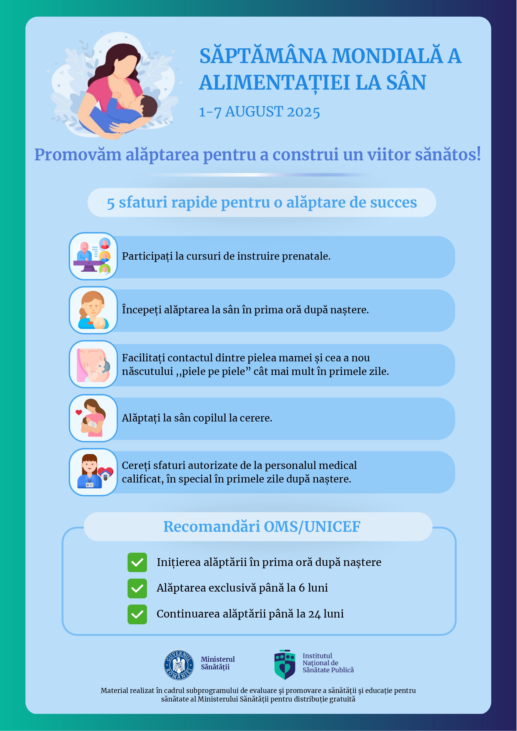 *Între 1 și 7 august 2025, se celebrează importanța alăptării ca prim pas esențial pentru sănătatea, dezvoltarea și echitatea pe tot parcursul vieții