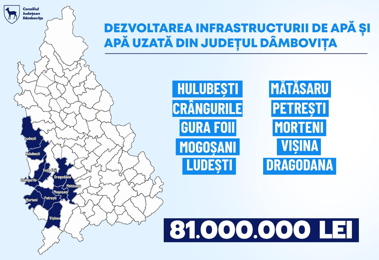 *Contractul, în valoare de 81.864.243 lei, include lucrări de proiectare detaliată și construcții complexe pentru modernizarea și extinderea sistemului de alimentare cu apă din zona de Vest a județului Dâmbovița