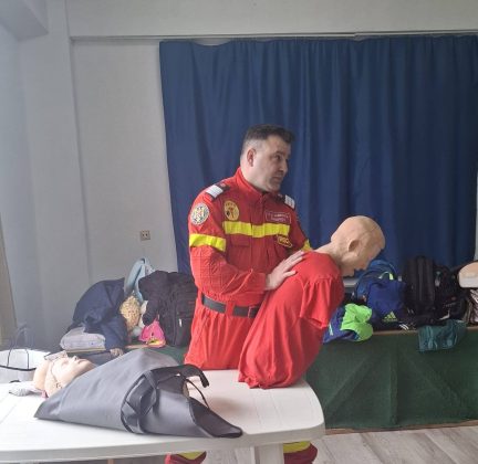 Pe parcursul sesiunii de instruire, tinerii au fost familiarizați cu noțiunile fundamentale privind acordarea primului ajutor premedical. Salvatorul le-a prezentat și explicat pas cu pas manevrele vitale de dezobstrucție a căilor respiratorii, esențiale în cazurile de sufocare mecanică, precum și tehnicile de suport vital de bază aplicabile pentru diferite categorii de vârstă. De asemenea, elevilor le-au fost demonstrate metodele de realizare a hemostazei primare pentru oprirea hemoragiilor și pașii exacți care trebuie urmați atunci când identifică o persoană aflată în stare de inconștiență sau dificultate majoră. Dincolo de manevrele fizice, o atenție deosebită a fost acordată componentei psihologice și procedurale a unei urgențe, specialistul explicându-le copiilor cât de important este să își păstreze calmul și cum trebuie să apeleze corect și eficient numărul unic de urgență 112 pentru a oferi detalii relevante dispecerilor. La această activitate interactivă au luat parte 130 de elevi și cinci cadre didactice, toți urmărind cu un real interes informațiile teoretice și implicându-se activ în exercițiile practice propuse de autorități.