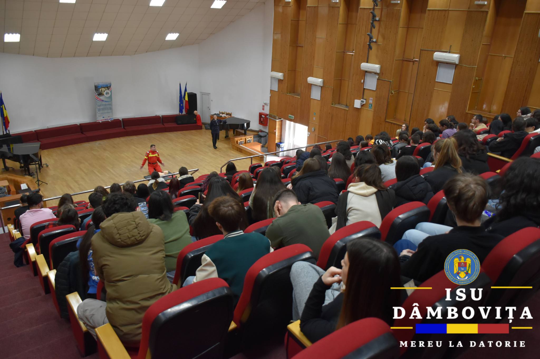 Sub sloganul „Împreună mai pregătiți!”, Inspectoratul pentru Situații de Urgență „Basarab I” al județului Dâmbovița continuă seria evenimentelor dedicate informării și pregătirii populației. Marți, 3 martie, specialiștii ISU au poposit la Liceul de Arte „Bălașa Doamna” din Târgoviște, unde au susținut o amplă activitate de instruire axată pe acordarea primului ajutor de bază. Pe parcursul sesiunii interactive, elevii și profesorii au avut ocazia nu doar să asculte, ci și să exerseze aplicat manevrele esențiale care pot face diferența dintre viață și moarte. Salvatorii le-au explicat cursanților importanța apelării corecte a numărului unic de urgență 112 și le-au demonstrat tehnicile de resuscitare cardio-pulmonară adaptate pentru adulți, copii și sugari. De asemenea, tinerii au învățat cum se realizează manevra de dezobstrucție a căilor aeriene în caz de sufocare, cum se așază o victimă inconștientă în poziția laterală de siguranță, dar și care este conduita adecvată în cazul unei crize de epilepsie sau atunci când se acordă sprijin unei persoane salvate de la înec.