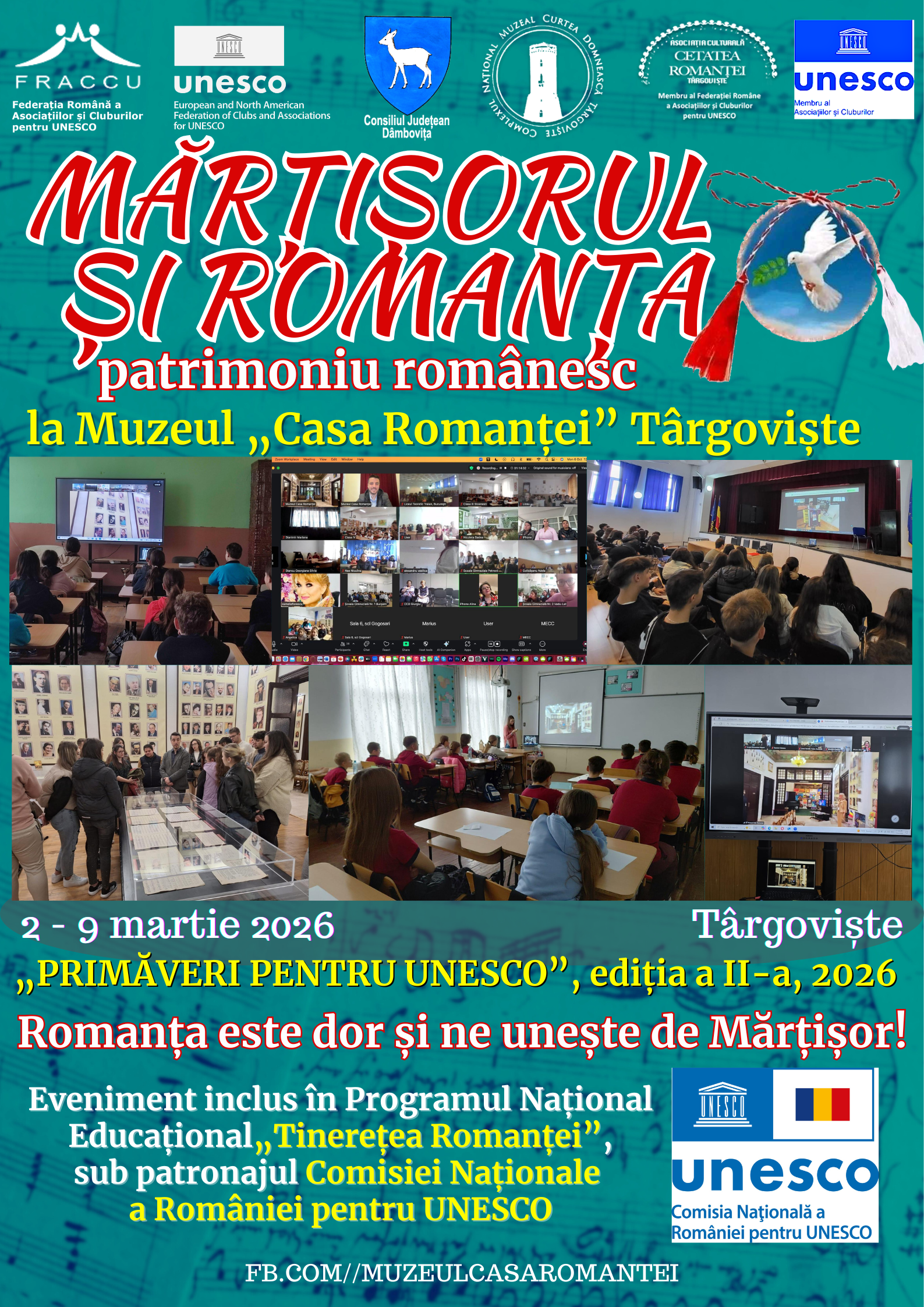 După succesul ediției de debut, programul „Primăveri pentru UNESCO” a revenit în anul 2026 cu ediția a II-a. Evenimentul „Mărțișoare cu Romanțe”, realizat de Asociația Culturală „Cetatea Romanței” Târgoviște, în colaborare cu Complexul Național Muzeal „Curtea Domnească”, face parte din acest amplu program organizat de Federația Română a Asociațiilor și Cluburilor pentru UNESCO (FRACU), în parteneriat cu Federația Europeană și Nord-Americană a Asociațiilor și Cluburilor pentru UNESCO (FENAACU).