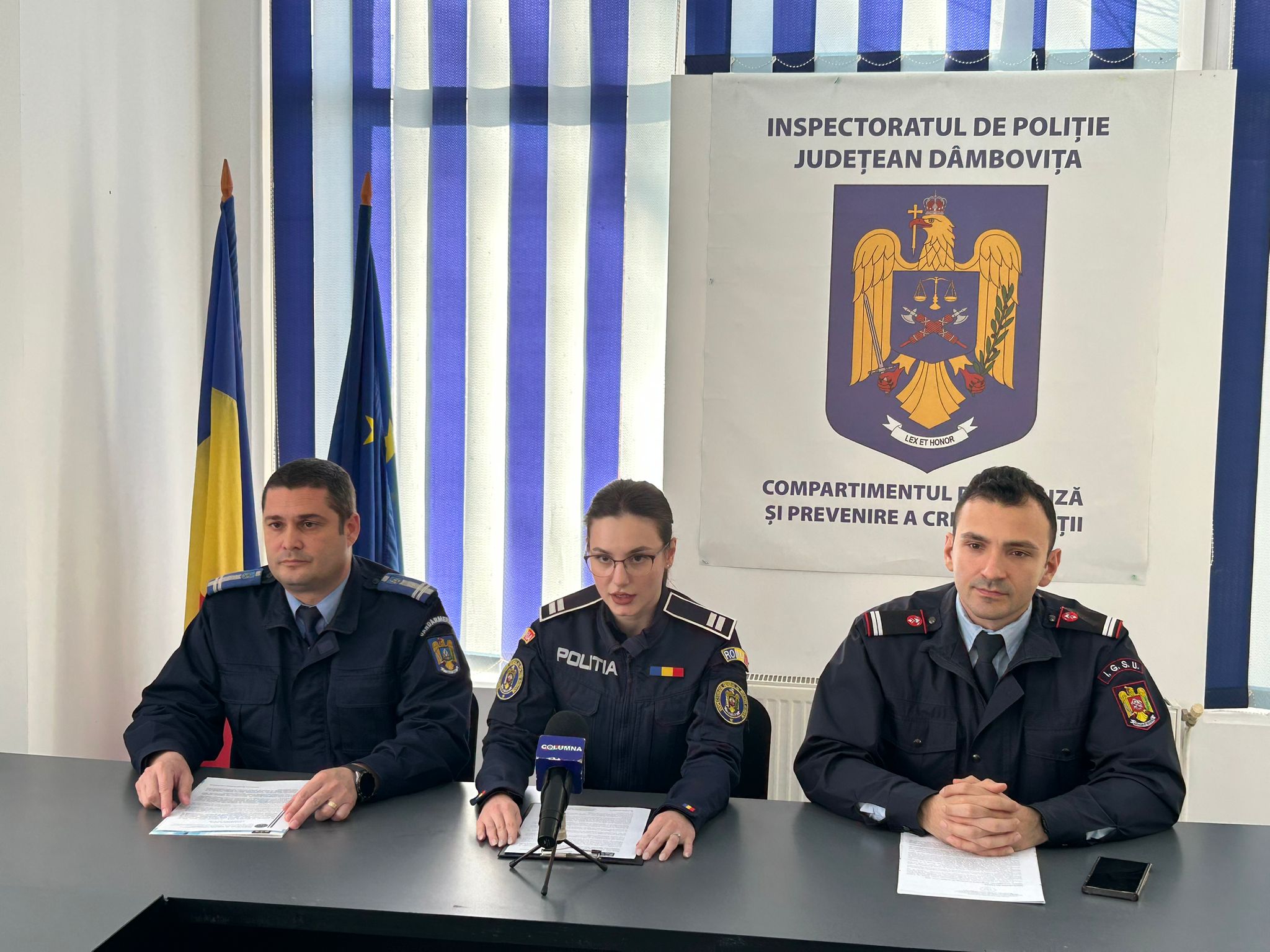 Ștefania Puică, reprezentanta IPJ Dâmbovița, a detaliat măsurile luate pentru asigurarea ordinii publice, reducerea riscului rutier și combaterea faptelor antisociale. În perioada menționată, peste 200 de polițiști au fost implicați zilnic în activități operative, organizând 40 de acțiuni punctuale. Astfel, pe parcursul celor opt zile, polițiștii au intervenit la 279 de evenimente, 177 dintre acestea fiind sesizate prin 112. Au fost înregistrate 148 de infracțiuni, dintre care 76 contra persoanei și 32 contra patrimoniului. În urma anchetelor, 7 persoane au fost surprinse în flagrant, iar o persoană a fost supusă unei măsuri preventive. Pe linie rutieră, polițiștii au aplicat peste 890 de sancțiuni contravenționale, în valoare totală de 315.000 de lei, și au retras 17 certificate de înmatriculare. De asemenea, au fost reținute 72 de permise de conducere, majoritatea pentru depășirea vitezei legale și consum de alcool, și au fost constatate 11 infracțiuni rutiere.