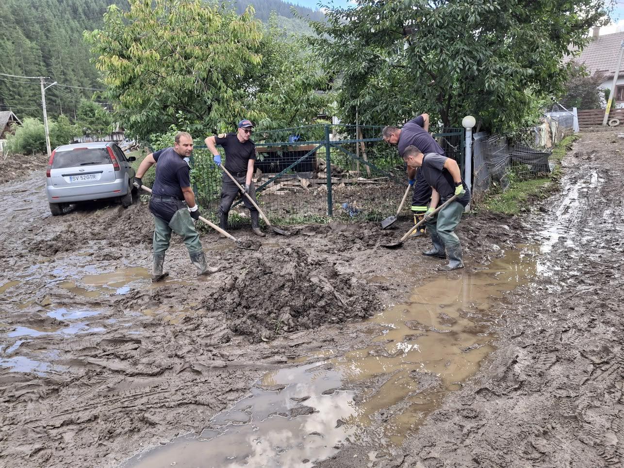Intervențiile pentru înlăturarea efectelor inundațiilor severe, care au afectat mai multe localități, în special Broșteni, Ostra și Stulpicani, continuă într-un ritm susținut. Pompierii militari, alături de jandarmi, polițiști, lucrători silvici, personal al Apelor Române și voluntari, desfășoară activități de decolmatare, evacuare de aluviuni și deșeuri, precum și curățarea și refacerea infrastructurii rutiere. Până în prezent, s-au efectuat operațiuni de evacuare a apei și aluviunilor din 593 de gospodării.