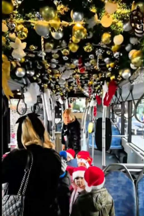 În zilele următoare, sediul Primăriei va fi vizitat de numeroase grupuri de copii care vor veni să colinde, transportul fiind asigurat cu patru autobuze special amenajate. Vehiculele au fost transformate atât la interior, cât și la exterior, pentru a crea o atmosferă specifică sărbătorilor de iarnă, diferită de conceptele utilizate în anii anteriori.