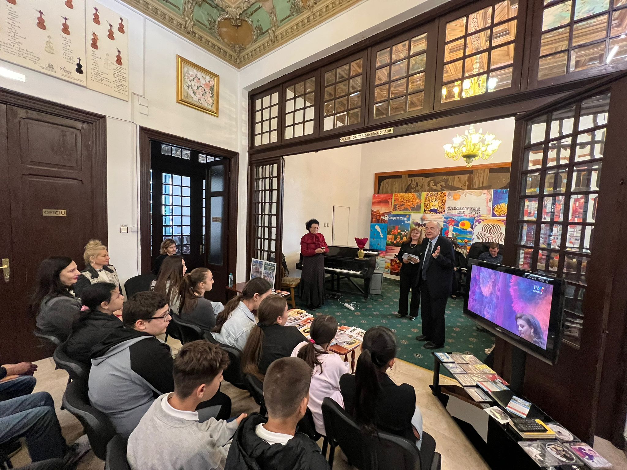 Alocuțiunile scriitorilor și ale bibliotecarilor au captat atenția celor 80 de elevi care au răspuns provocării poetului Emil Stănescu de a recita împreună testamentul poetului Ienăchiță Văcărescu.