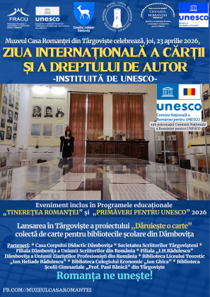 Într-o atmosferă de aleasă sărbătoare culturală, Muzeul „Casa Romanței” din Târgoviște a celebrat joi, 23 aprilie 2026, Ziua Internațională a Cărții și a Dreptului de Autor și Ziua Bibliotecarului, printr-un eveniment de o deosebită rezonanță, dedicat promovării lecturii și spiritului creativ. Manifestarea a fost inclusă în programele educaționale de prestigiu „Tinerețea Romanței” și „Primăveri pentru UNESCO” 2026, desfășurate sub patronajul Comisiei Naționale a României pentru UNESCO.