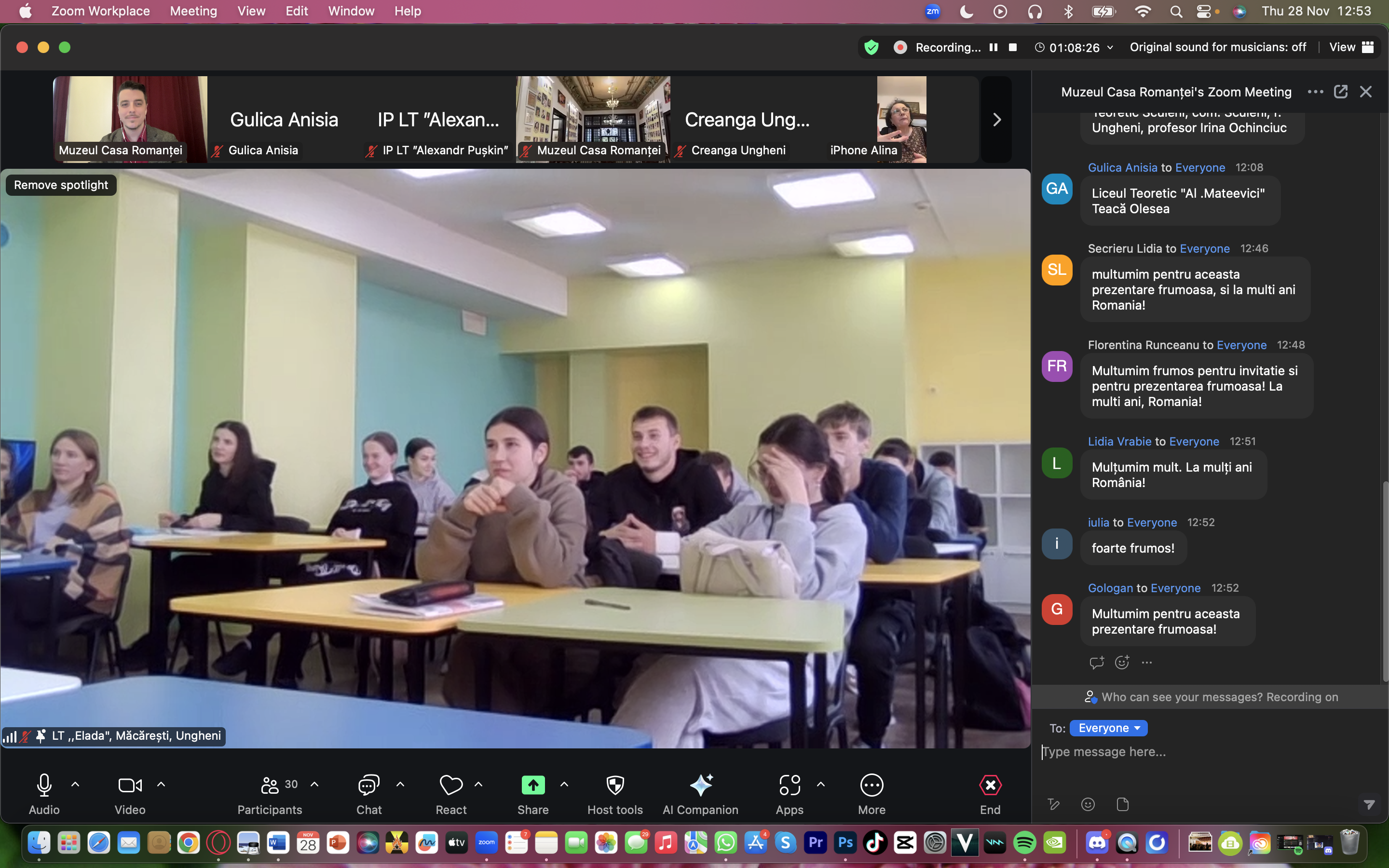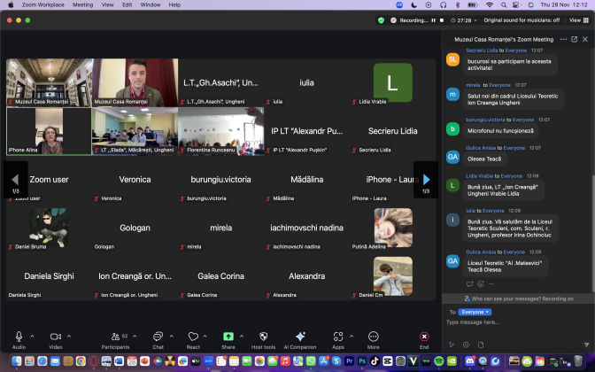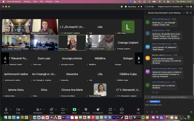 *Limba este însăşi floarea sufletului etnic al românimii.”, iar astăzi, datorită excursiei digitale la Muzeul ,,Casa Romanței”, am perceput, cu toții, că romanța apare și se manifestă ca un simbol al sentimentului nemuritor de unitate a românilor de pretutindeni. De aceea, vă mulțumim că ne-ați înfiorat sufletele și, totodată, ne-ați inițiat spre descoperirea liniei melodice a graiului nostru strămoșesc. (elevii din Ungheni, Rep. Moldova)