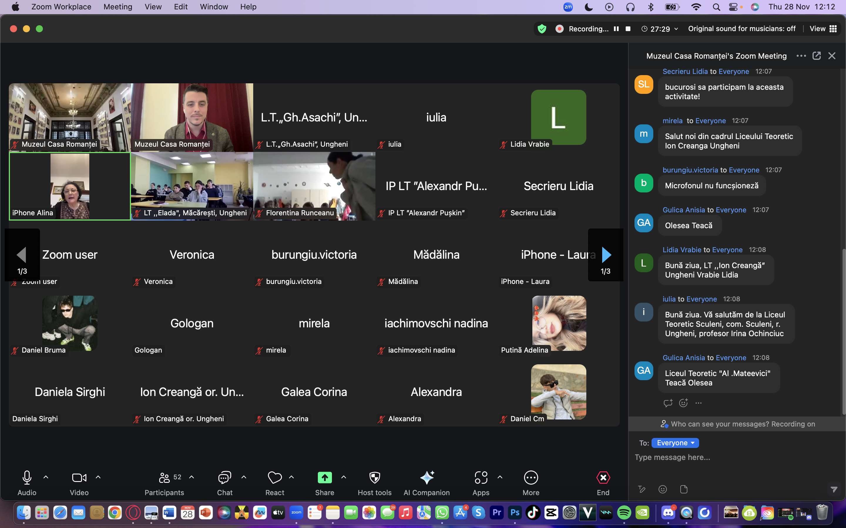 *„Această vizită virtuală a reprezentat un izvor de cunoaștere atât pentru elevi, cât și pentru mine. Cu toții am rămas impresionați de muzeu, de saloanele dedicate marilor personalități, cât și frânturile de istorie națională care ne fac să ne iubim țara zi de zi tot mai mult. Sunt onorat de întâlnirea cu persoanele care ne-au invitat, prezentat și cântat.”