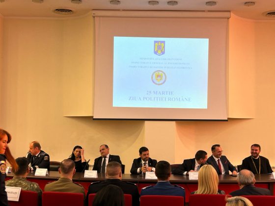 *În cadrul ceremoniei, oficialii prezenți au transmis mesaje de apreciere pentru activitatea polițiștilor și importanța instituției în societatea românească