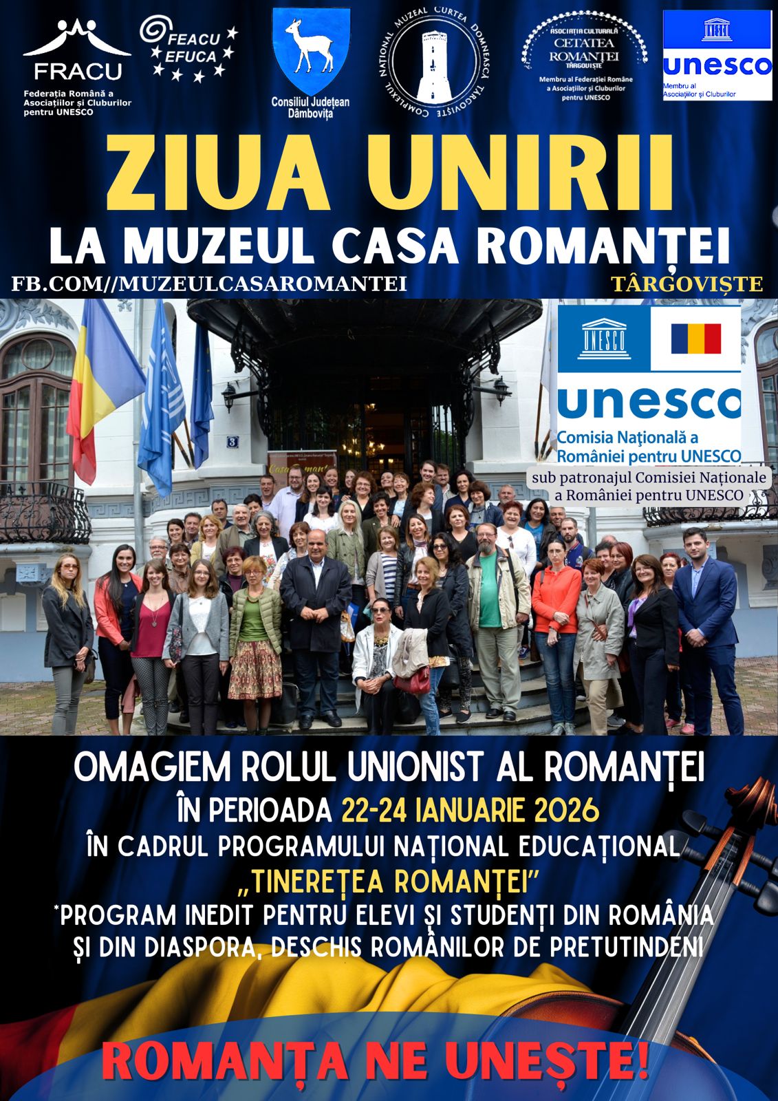 Muzeul „Casa Romanței” din Târgoviște a sărbătorit Ziua Unirii Principatelor Române printr-o suită de vizite memorabile desfășurate în perioada 22-24 ianuarie 2026. În cadrul Programului Național Educațional „Tinerețea Romanței”, desfășurat sub patronajul Comisiei Naționale a României pentru UNESCO, ediția din acest an a înregistrat un record emoționant de participare, aducând în fața ecranelor și în sălile muzeului o nouă generație de „mici unioniști” din România și Rep. Moldova.